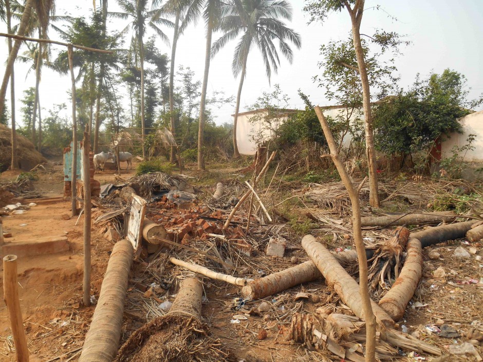 Phalin_2.lowresApproximately five kilometers inland from Gopalpur on the Odisha coastline lies a village where Cyclone Phailin, the second strongest cyclone in India’s history, made landfall. At the local level, government, media, NGOs, and community relief efforts were apparent and a need for recovery work still evident. Government: The government played an active role in notifying the community of impending dangers via television broadcasts, and villagers were therefore able to move to a university campus nearby to seek shelter. Immediately after the cyclone struck the community, the government provided each household 500 rupees, 50 kilograms of rice, lentils, and other basic supplies. Furthermore, the government provided tarps to cover houses and provide shelters. After conducting a survey to determine the needs of the community, the government provided grants to villagers to rebuild their homes in amounts of 1900 rupees toward partial reparations, 3200 for major repairs, and 17000 rupees for demolished homes. Community: About 200 households, 195 of which belong to scheduled tribe/caste population, comprise the village. Immediately after the disaster, this tight-knit community got together and started clearing local roads and helping each other rebuild their homes. An active community leader ensured an even distribution of relief supplies as well as ensured the supplies reached those in need. NGOs: Having an established organization on the ground is critical prior to any disaster. The NGO needs to gain trust of the organization. The local NGO in partner with other NGOs distributed some robust tarps and other immediate supplies, such as buckets, soap, and mosquito nets. The second village was in close proximity to the first, and was also comprised of scheduled tribe/caste community members. The members work as day labors and seemed physically fit. The men earn 180 rupees a day while the women earn 130. It was observed that the decision-making was male dominated, and  the entire village seemed to segregate themselves according to gender, with men sitting on one side of the congregation and the women on the other. Government: A government officer (mandal level) announced warnings to the community of the impending cyclone. The local media also broadcasted plenty of warning about the cyclone. Given this information, the villagers moved the elderly and disabled community members to safer grounds two days prior to the cyclone landfall. Post disaster, it was discovered four or five pukka houses had collapsed. The government provided financial compensation and food supplies;  however, despite a government officer surveying and assessing the damages, no financial relief, which are sent directly to citizens’ bank accounts electronically, had been received as of writing this post. There was no anticipation of the floods that followed the cyclone, and it took about one month for electricity to be restored to the community. Community: Importance of a viable leader and the ability to communicate to outside stakeholder is evident. Phalin.lowresRole for IDS: All plantations were wiped out, as shown in top photo. We had discussion with the community to determine their needs. There is potential to support this village in its recovery efforts by providing seeds and saplings for various types of vegetables and fruit bearing trees. For about 1000$ we can help 200 households totaling more than 1000 citizens.